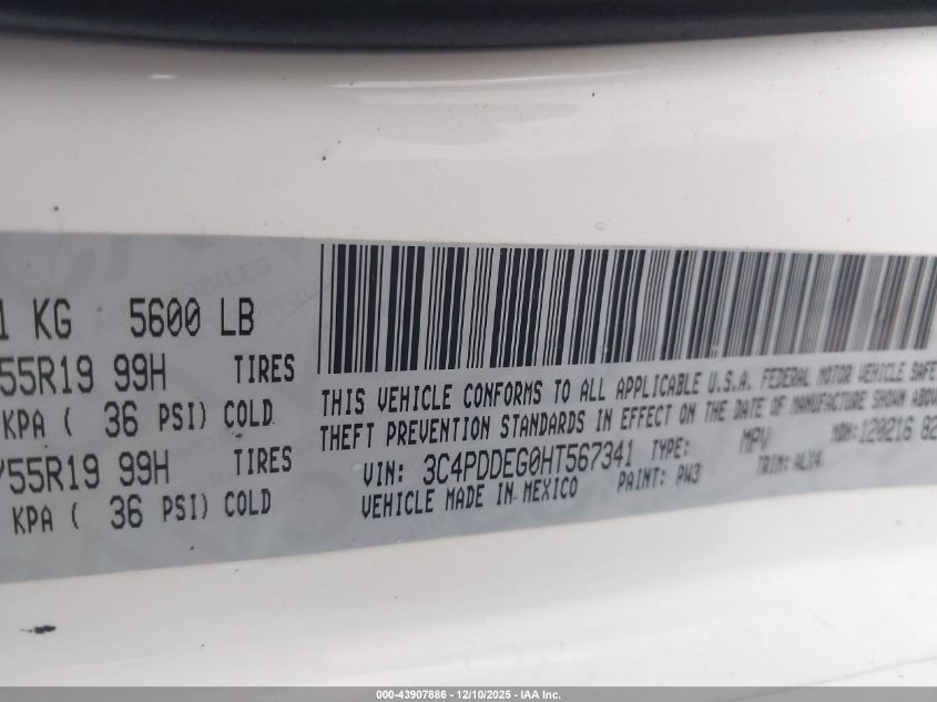 2017 DODGE JOURNEY 2017 року Бензин, 3.6, Полный привод, vin - 3C4PDDEG0HT567341 из США