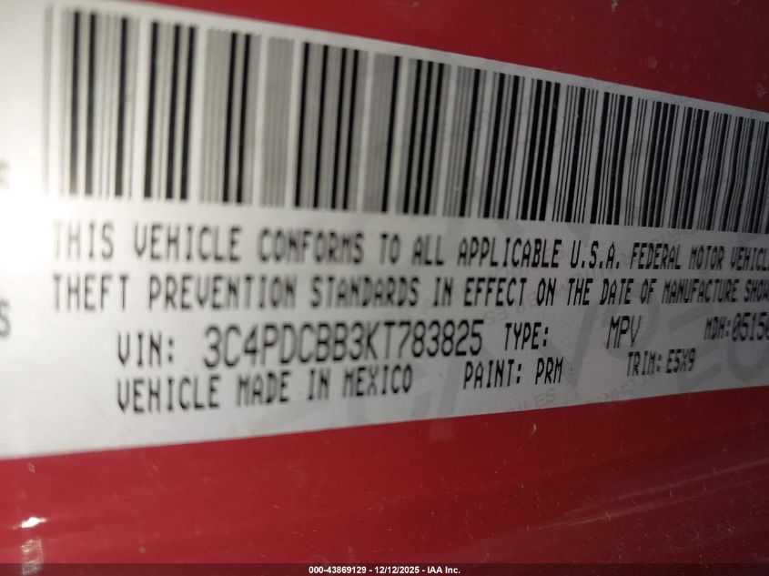 Цвет КрасныйЦилиндры 4Привод Передний приводVIN 3C4PDCBB3KT783825Состояние СтационарноПовреждения Передняя или задняя AutoRIA
