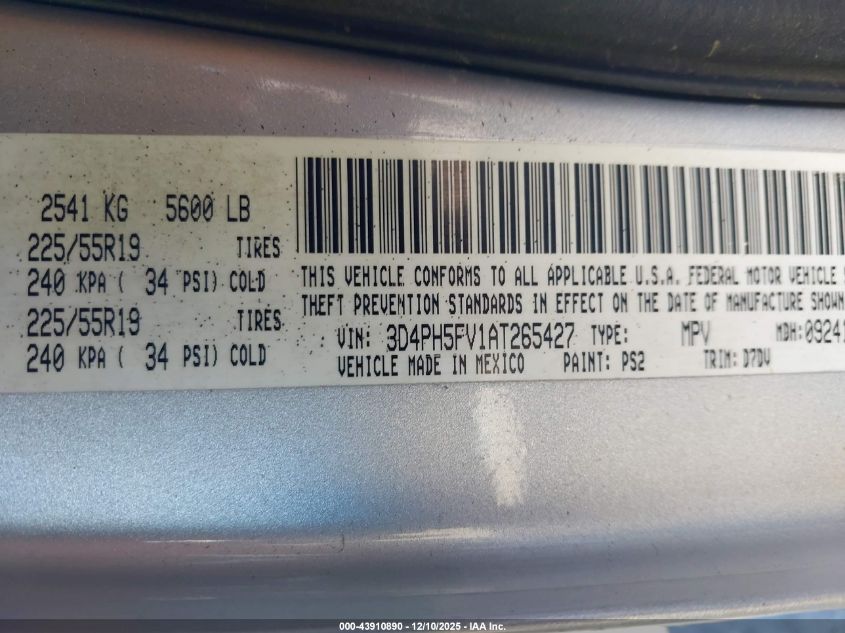 2010 DODGE JOURNEY 2010 року Бензин, 3.5, Полный привод, vin - 3D4PH5FV1AT265427 из США