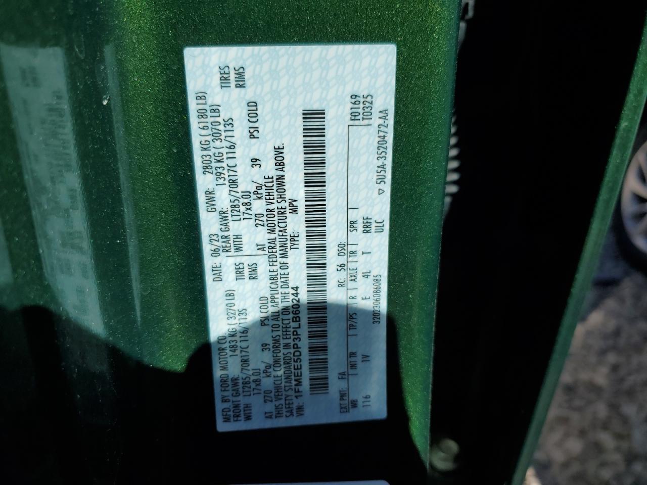 Цвет ЗеленыйЦилиндры 6Привод Полный приводVIN 1FMEE5DP3PLB60244Состояние ЗаводитсяПовреждения Передняя или задняяДата аукциона 2025-09-05