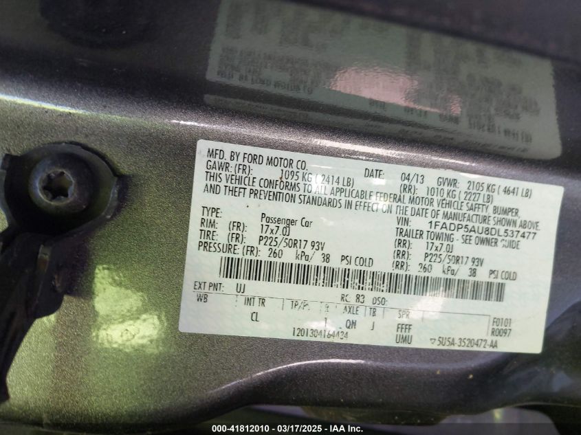 Цвет СерыйЦилиндры 4Привод Передний приводVIN 1FADP5AU8DL******Состояние НеизвестноПовреждения Передняя левая