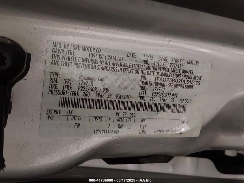 Цвет СеребряныйЦилиндры 4Привод Передний приводVIN 1FADP5BU2DL******Состояние НеизвестноПовреждения Передняя леваяДата аукциона 2025-05-01
