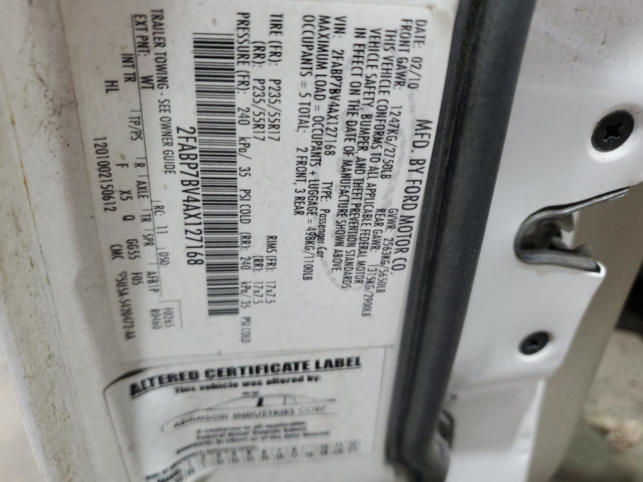 Цвет БелыйЦилиндры 8Привод Задний приводVIN 2FABP7BV4AX127168Состояние НеизвестноПовреждения Передняя или задняяДата аукциона 2025-06-19