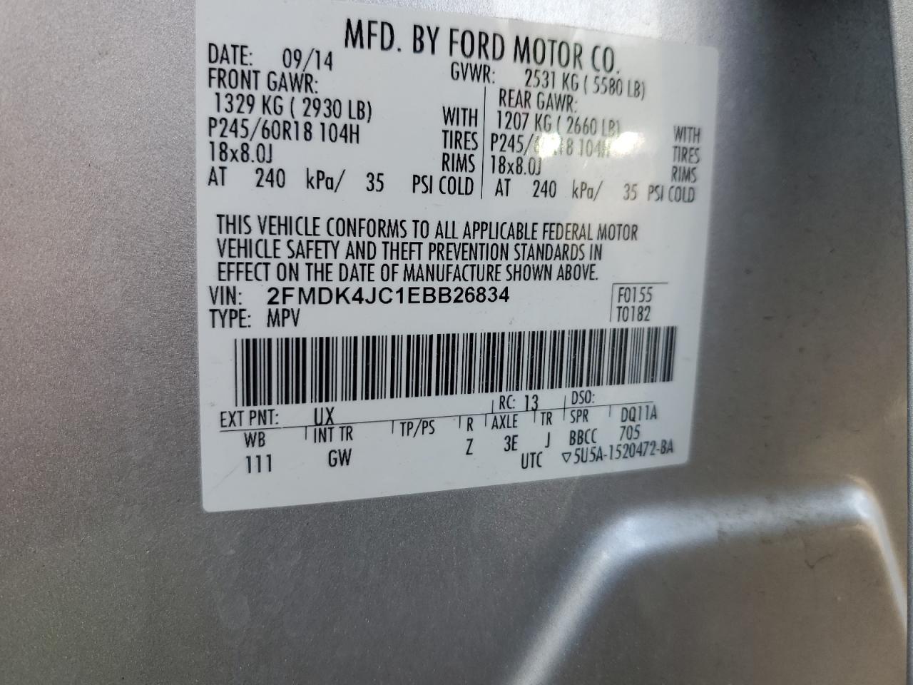Цвет СеребряныйЦилиндры 6Привод Полный приводVIN 2FMDK4JC1EBB26834Состояние Заводится и едет (проверено)Повреждения Передняя или задняя AutoRIA