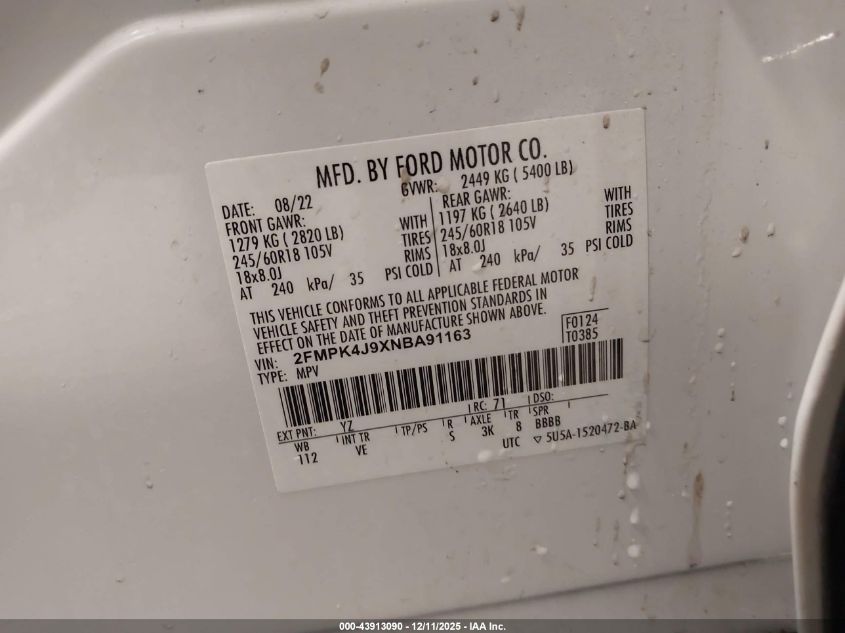 2022 FORD EDGE 2022 року Бензин, 2.0, Полный привод, vin - 2FMPK4J9XNBA91163 из США