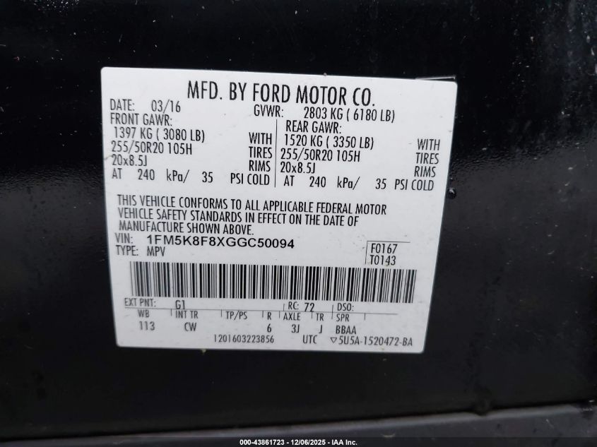 2016 FORD EXPLORER LIMITED