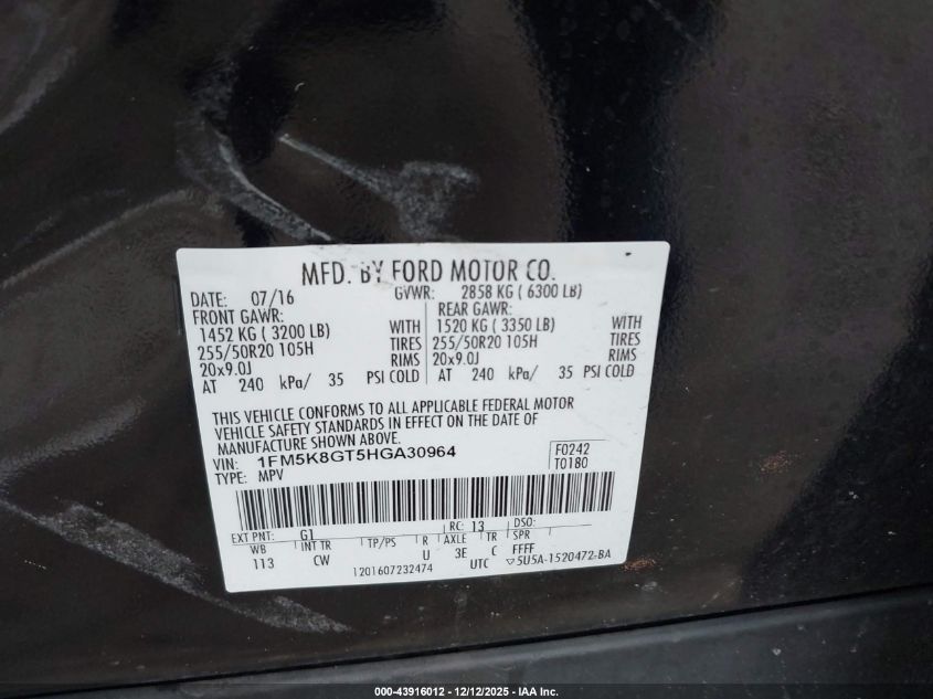 2017 FORD EXPLORER 2017 року Бензин, 3.5, Полный привод, vin - 1FM5K8GT5HGA30964 из США