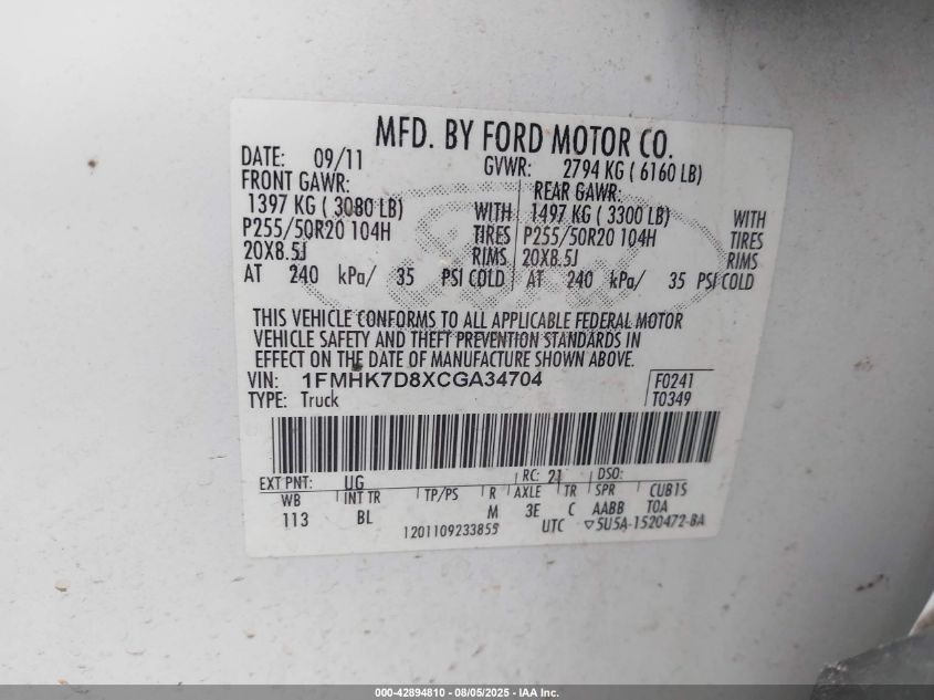 2012 FORD EXPLORER LIMITED