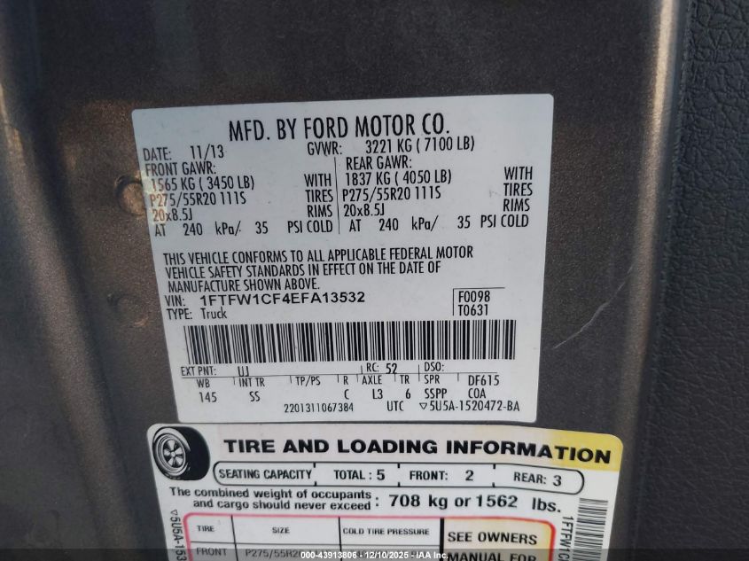 Цвет СерыйЦилиндры 8VIN 1FTFW1CF4EFA13532Состояние СтационарноПовреждения Передняя или задняя AutoRIA