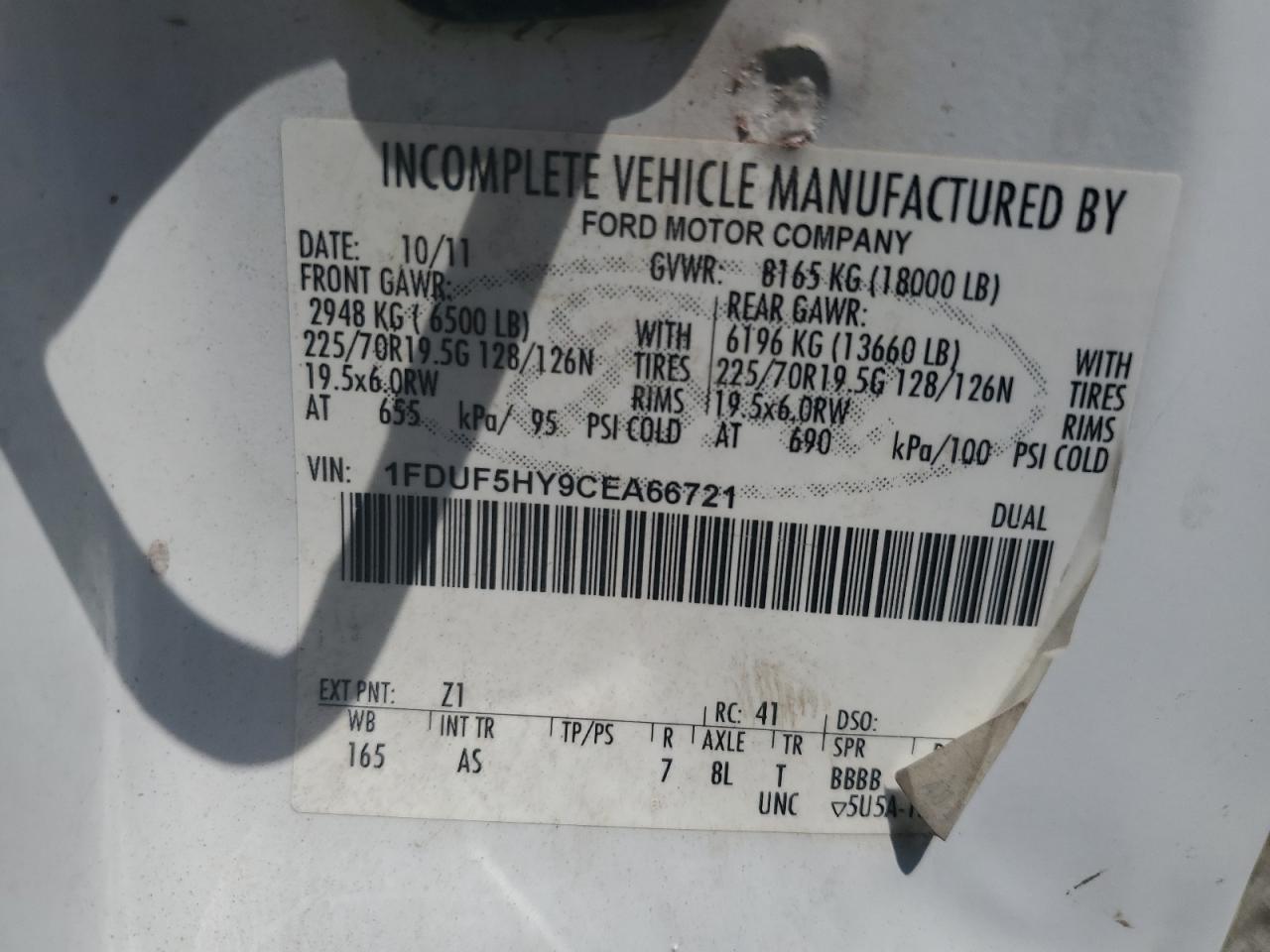 2012 FORD F-550 2012 року Бензин, 6.8, 4x4 с задним приводом, vin - 1FDUF5HY9CEA66721 из США