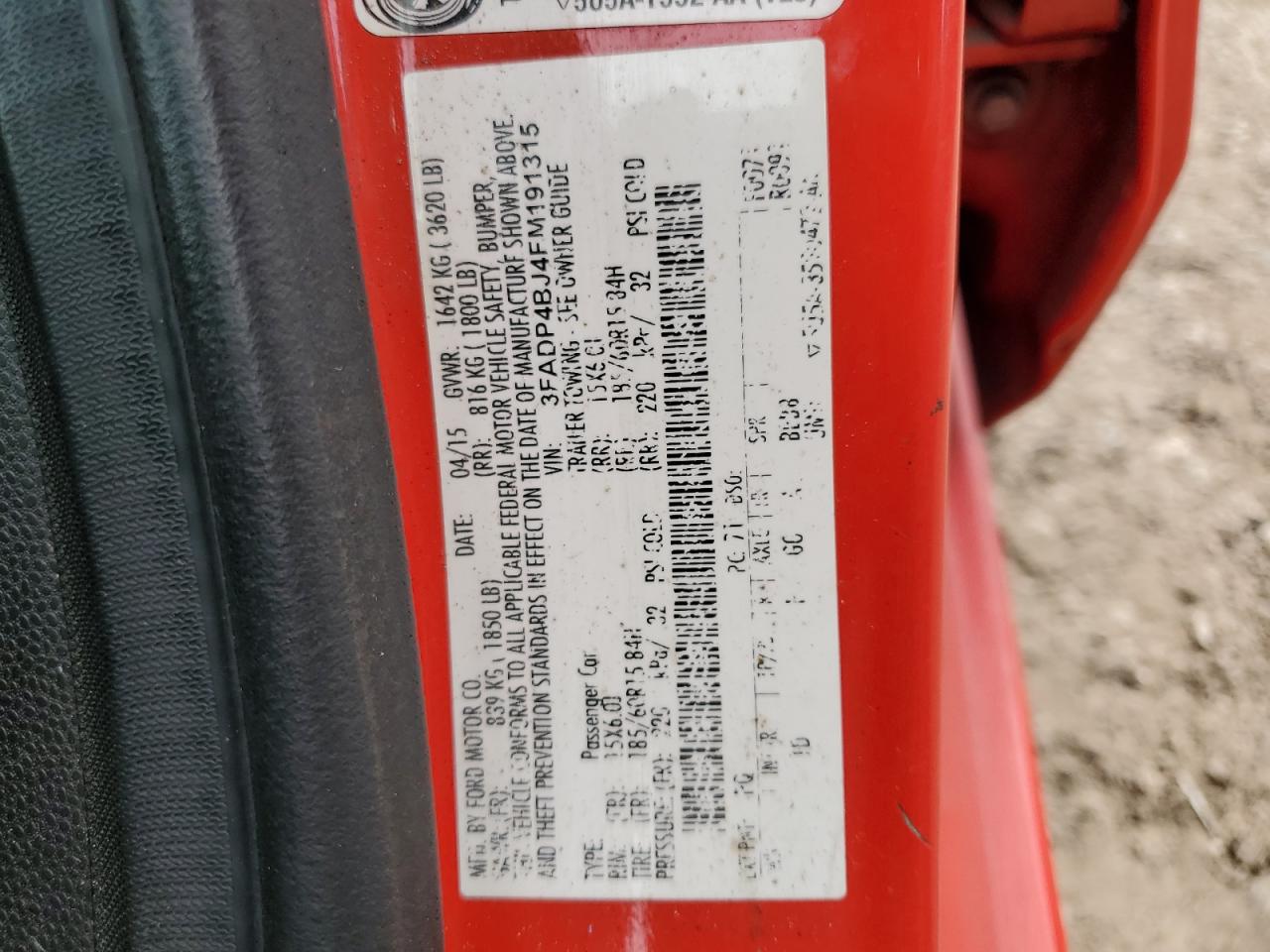 Цвет КрасныйЦилиндры 4VIN 3FADP4BJ4FM191315Состояние НеизвестноПовреждения НезначительныеДата аукциона 2025-06-26