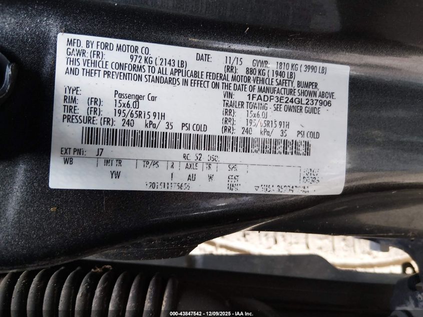 Цвет СерыйЦилиндры 4Привод Передний приводVIN 1FADP3E24GL237906Состояние СтационарноПовреждения Задняя AutoRIA