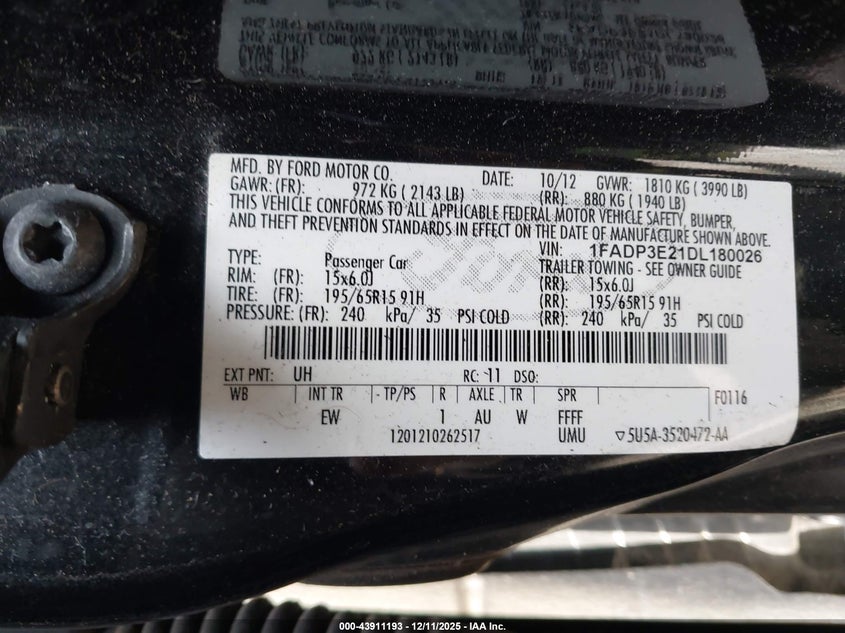 Цвет ЧерныйЦилиндры 4Привод Передний приводVIN 1FADP3E21DL180026Состояние СтационарноПовреждения Обычный износ AutoRIA