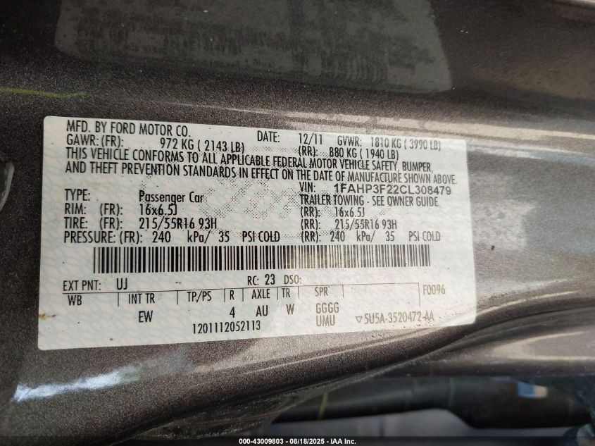 2012 FORD FOCUS 2012 року Бензин, 2.0, Передний привод, vin - 1FAHP3F22CL****** из США