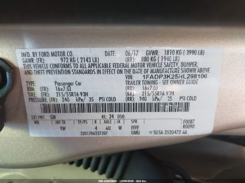 2017 FORD FOCUS SE