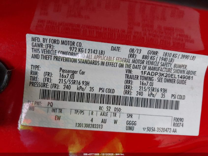 Цвет КрасныйЦилиндры 4Привод Передний приводVIN 1FADP3K20EL149081Состояние СтационарноПовреждения Передняя или задняя AutoRIA