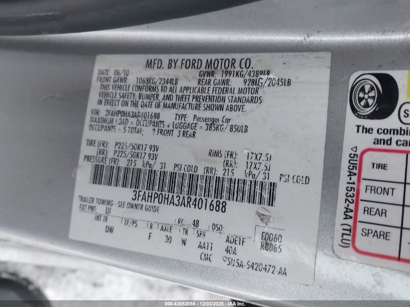 2010 FORD FUSION 2010 року Бензин, 2.5, Передний привод, vin - 3FAHP0HA3AR401688 из США
