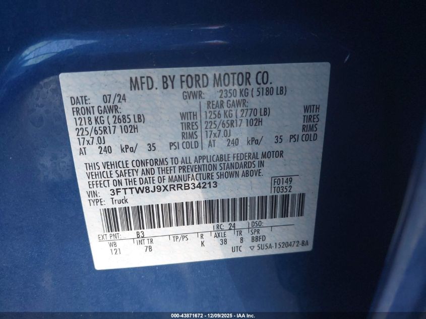 2024 FORD MAVERICK 2024 року Бензин, 2.0, Полный привод, vin - 3FTTW8J9XRRB34213 из США