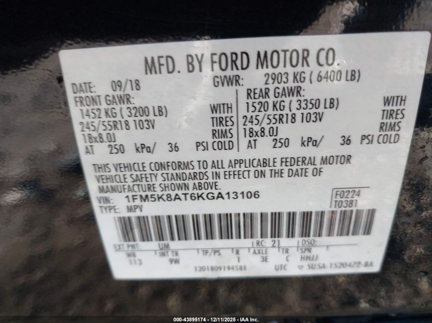 Цвет ЧерныйЦилиндры 6Привод Полный приводVIN 1FM5K8AT6KGA13106Состояние Заводится и едет (проверено)Повреждения Передняя или задняя