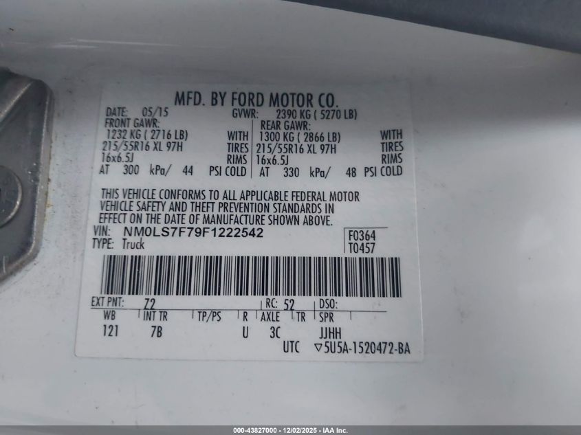 2015 FORD TRANSIT CONNECT 2015 року Бензин, 2.5, Передний привод, vin - NM0LS7F79F1222542 из США