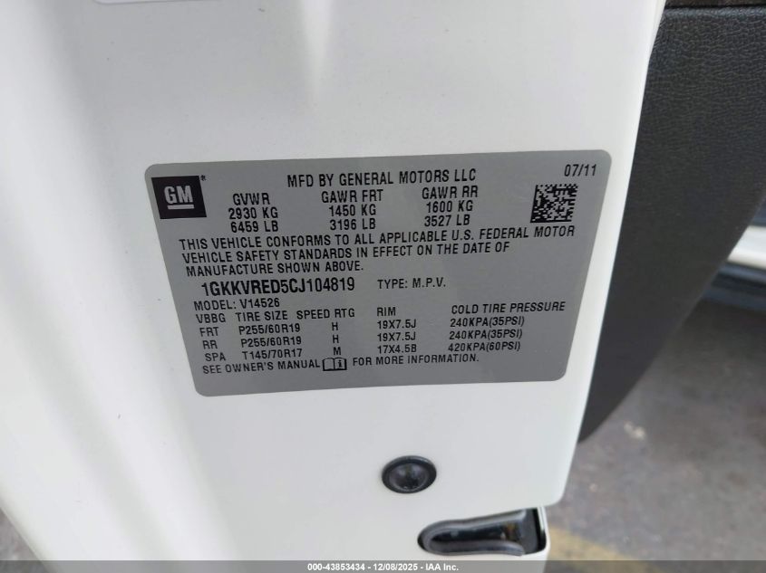 2012 GMC ACADIA 2012 року Бензин, 3.6, Полный привод, vin - 1GKKVRED5CJ104819 из США