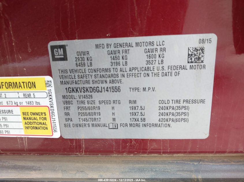 2016 GMC ACADIA 2016 року Бензин, 3.6, Полный привод, vin - 1GKKVSKD6GJ141556 из США