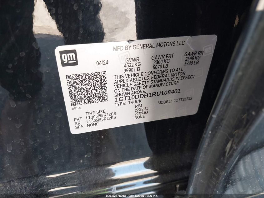 2024 GMC HUMMER EV 2024 року Электрический, 0.0, Полный привод, vin - 1GT10DDB1RU****** из США