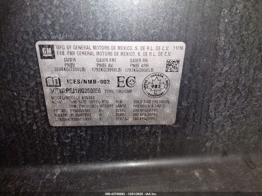 Цвет БирюзовийЦилиндры 8Привод Полный приводVIN 3GTU2PEJ1HG260856Состояние СтационарноПовреждения Передняя или задняя