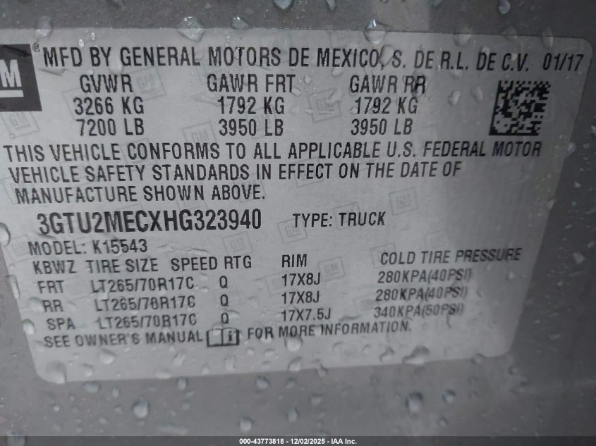 Цвет СерыйЦилиндры 8Привод Полный приводVIN 3GTU2MECXHG323940Состояние СтационарноПовреждения Передняя или задняя
