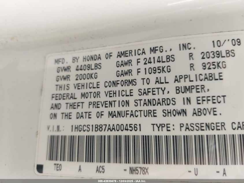 2010 HONDA ACCORD 2010 року Бензин, 2.4, Передний привод, vin - 1HGCS1B87AA004561 из США