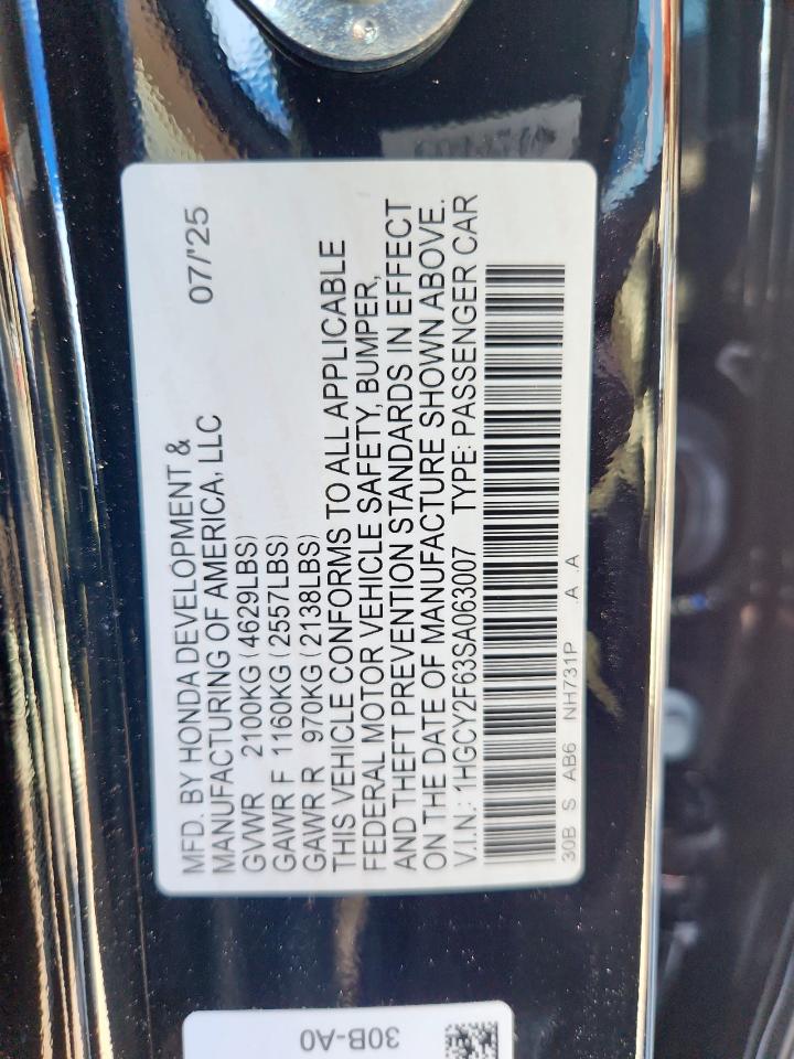 2025 HONDA ACCORD 2025 року Гибрид, 2.0, , vin - 1HGCY2F63SA063007 из США