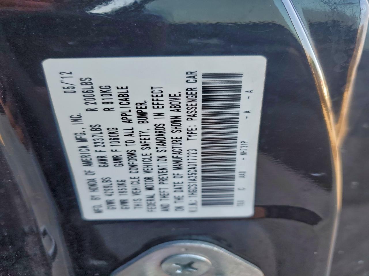 Цвет ЧерныйЦилиндры 4VIN 1HGCS1A35CA017723Состояние НеизвестноПовреждения Передняя или задняя AutoRIA