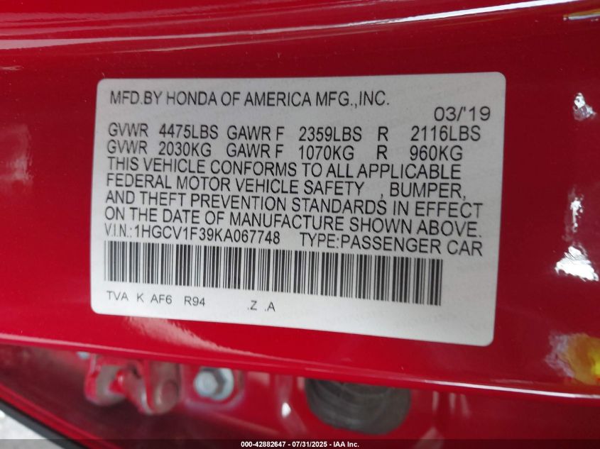 2019 HONDA ACCORD SPORT