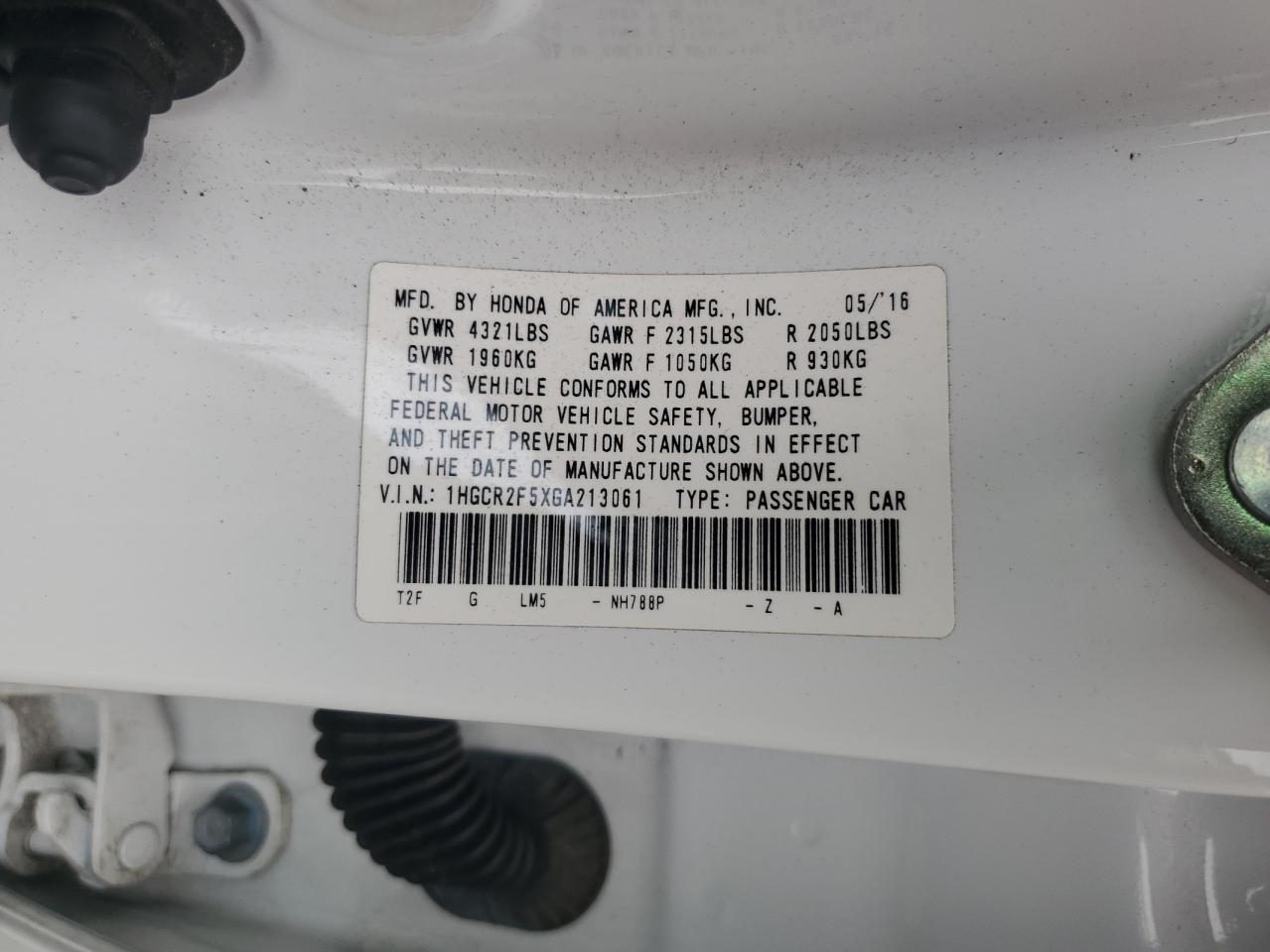Цвет БелыйЦилиндры 4VIN 1HGCR2F5XGA213061Состояние Заводится и едет (проверено)Повреждения Задняя AutoRIA