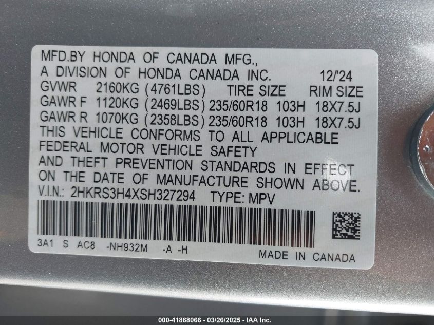 Цвет СеребряныйЦилиндры 4Привод Передний приводVIN 2HKRS3H4XSH******Состояние НеизвестноПовреждения Передняя или задняяДата аукциона 2025-07-08