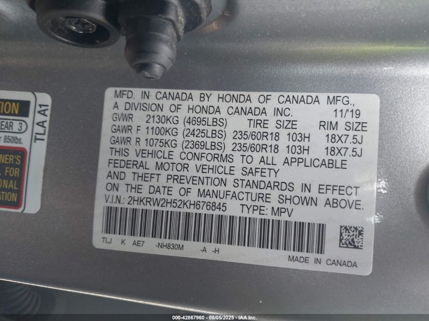 2019 HONDA CR-V 2019 року Бензин, 1.5, Полный привод, vin - 2HKRW2H52KH676845 из США