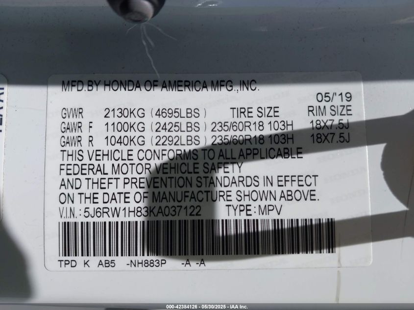 2019 HONDA CR-V 2019 року Бензин, 1.5, Передний привод, vin - 5J6RW1H83KA****** из США