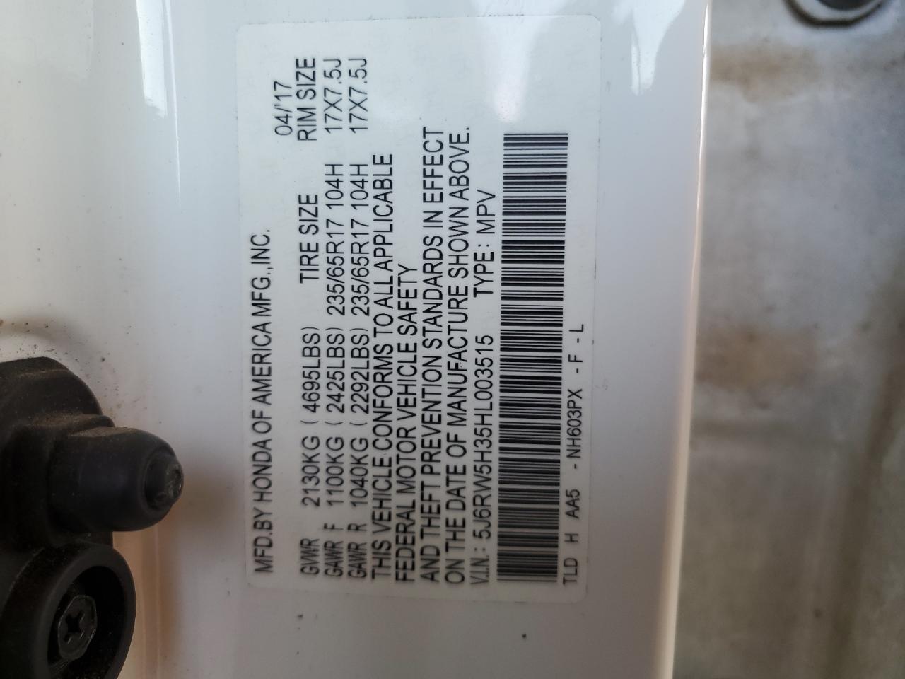2017 HONDA CR-V 2017 року Бензин, 2.4, , vin - 5J6RW5H35HL003515 из США