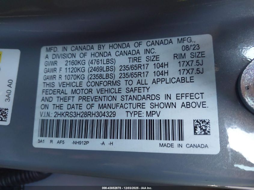 2024 HONDA CR-V 2024 року Бензин, 1.5, Передний привод, vin - 2HKRS3H28RH304329 из США