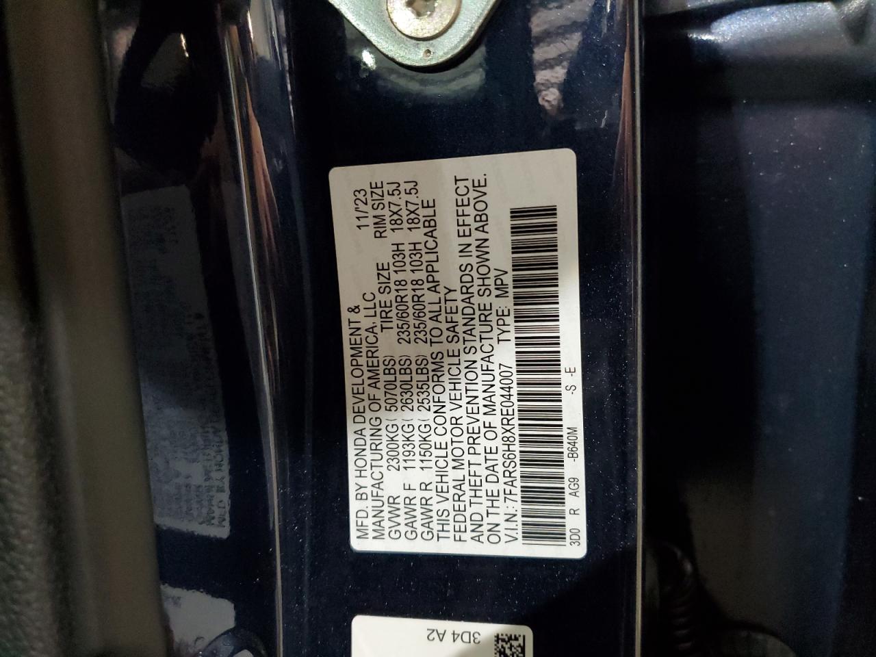 2024 HONDA CR-V 2024 року Гибрид, 2.0, Полный привод, vin - 7FARS6H8XRE044007 из США