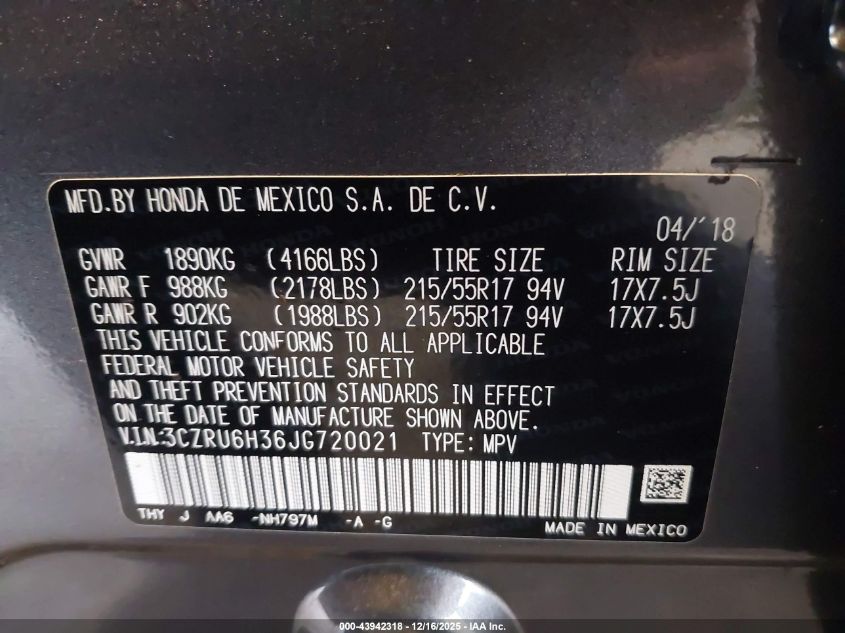 2018 HONDA HR-V 2018 року Бензин, 1.8, Полный привод, vin - 3CZRU6H36JG720021 из США