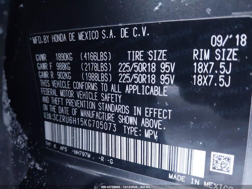 2019 HONDA HR-V 2019 року Бензин, 1.8, Полный привод, vin - 3CZRU6H15KG705073 из США