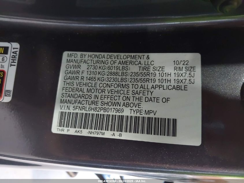 2023 HONDA ODYSSEY 2023 року Бензин, 3.5, Передний привод, vin - 5FNRL6H82PB017969 из США