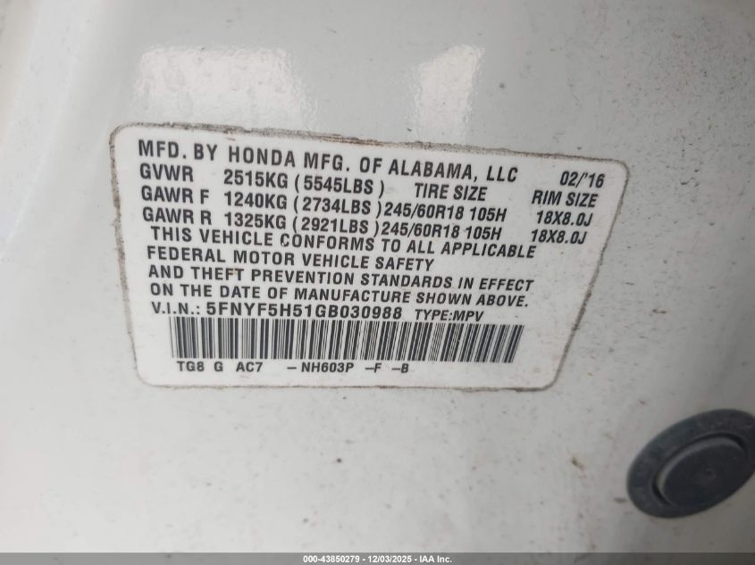 2016 HONDA PILOT EXL