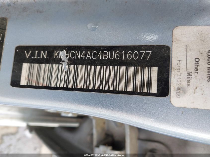 Цвет СинийЦилиндры 4Привод Передний приводVIN KMHCN4AC4BU******Состояние НеизвестноПовреждения Задняя леваяДата аукциона 2025-08-26