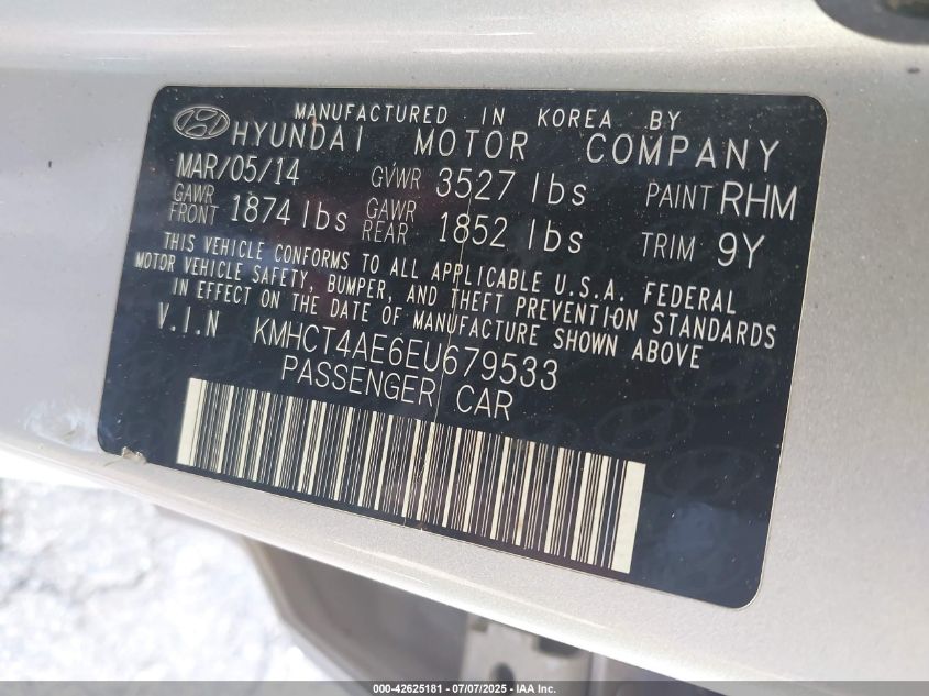 Цвет СеребряныйЦилиндры 4Привод Передний приводVIN KMHCT4AE6EU******Состояние НеизвестноПовреждения По всему автоДата аукциона 2025-08-13