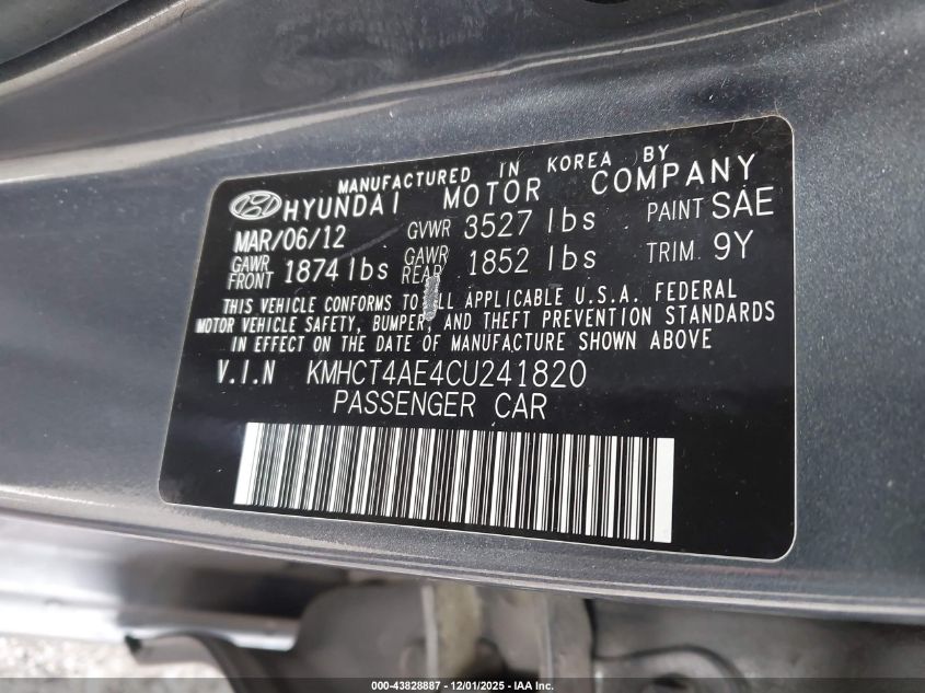 Цвет СерыйЦилиндры 4Привод Передний приводVIN KMHCT4AE4CU241820Состояние Заводится и едет (проверено)Повреждения Правая сторонаДата аукциона 2025-12-05 AutoRIA