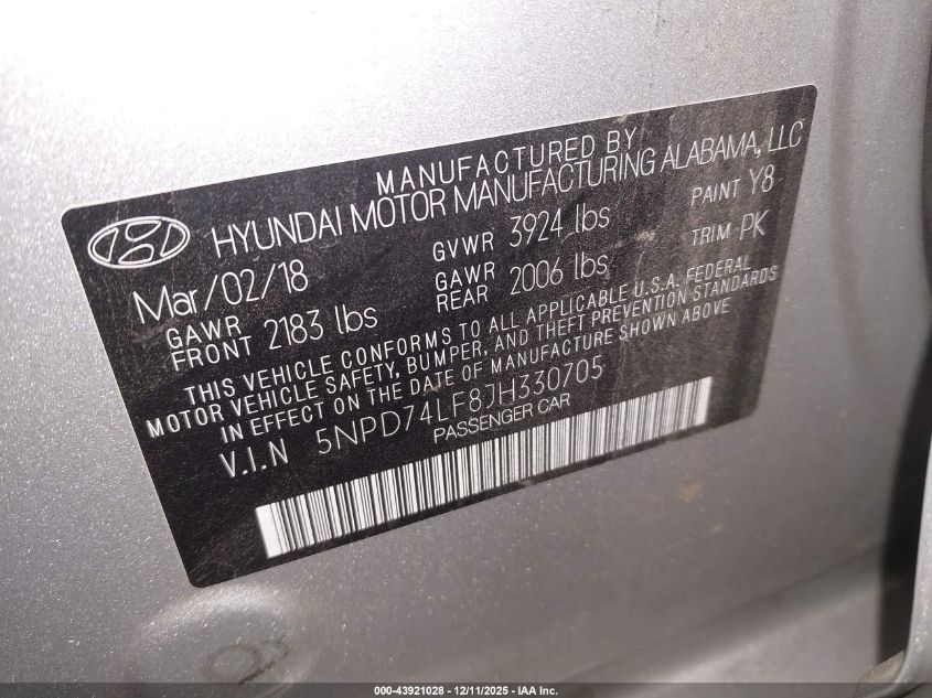 2018 HYUNDAI ELANTRA SEL