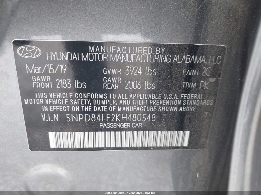 2019 HYUNDAI ELANTRA 2019 року Бензин, 2.0, Передний привод, vin - 5NPD84LF2KH480548 из США