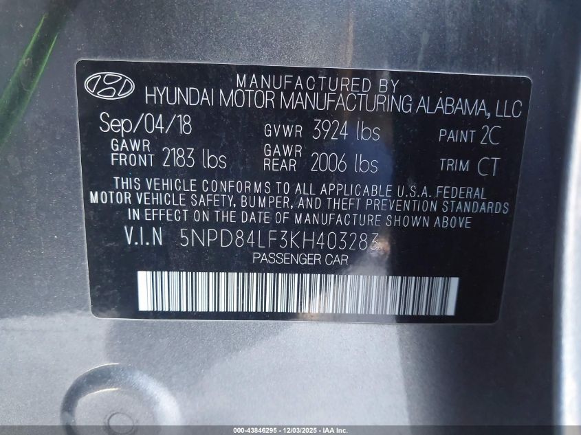 2019 HYUNDAI ELANTRA 2019 року Бензин, 2.0, Передний привод, vin - 5NPD84LF3KH403283 из США